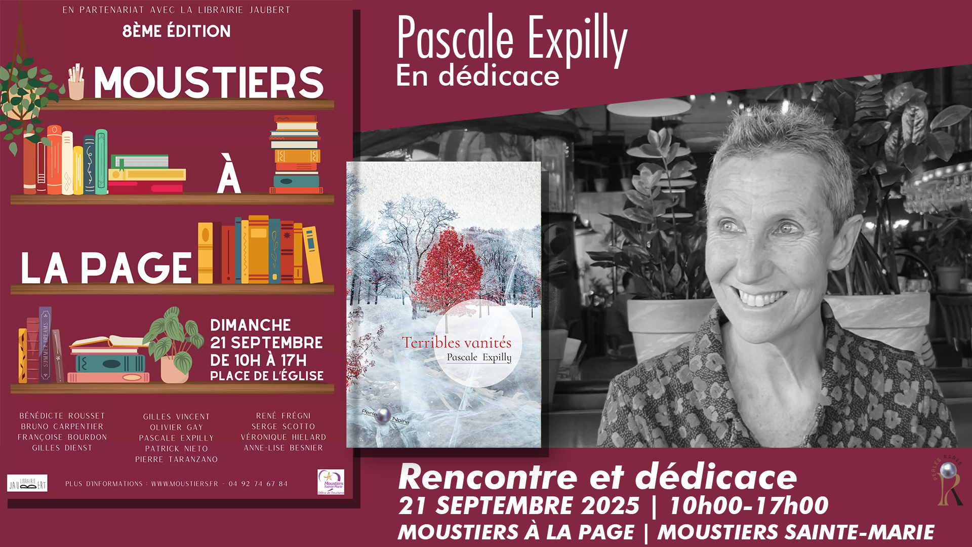 Pascale Expilly présentera son nouveau roman au cours de la 8ème édition de « Moustiers à la page » le 21 septembre 2025 de 10h00 à 17h00.
